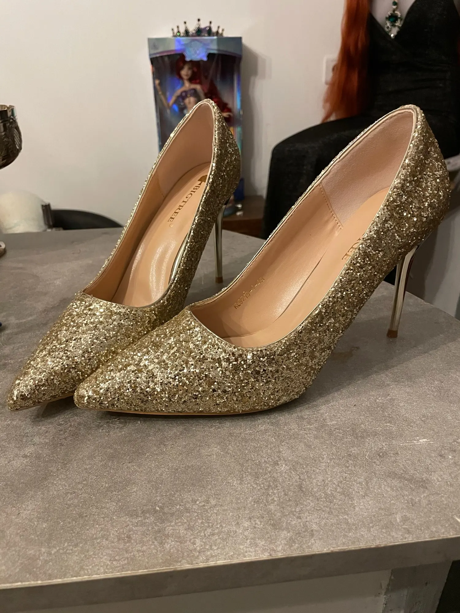 De las mujeres de moda Zapatos de tacón alto de la fiesta de la boda Bling mujer tacones de mujer bombas zapatos de mujer oro rojo plata Stiletto 9219-1