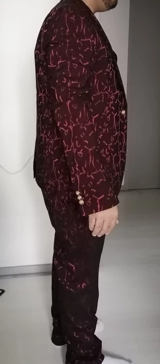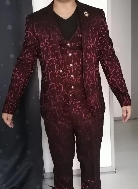 De los hombres de lujo conjuntos de traje de capa pantalón chaleco vestido de diseño trajes Floral Delgado hombres novio esmoquin azul real Borgoña para hombres
