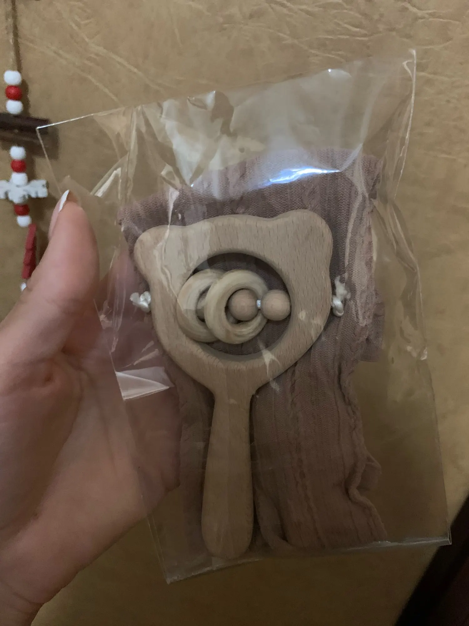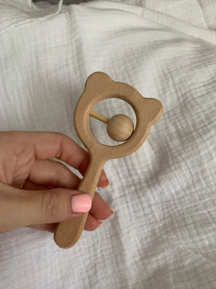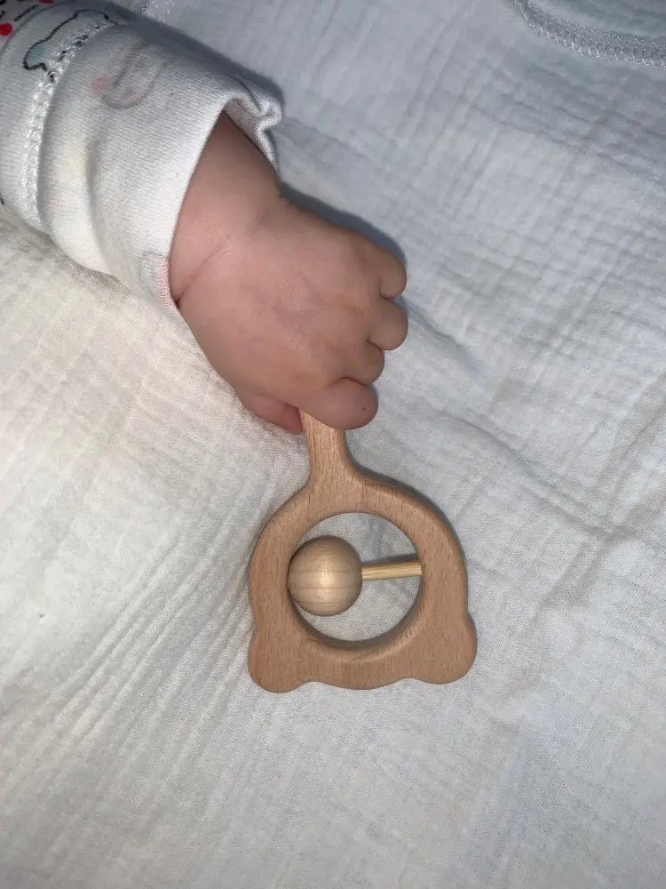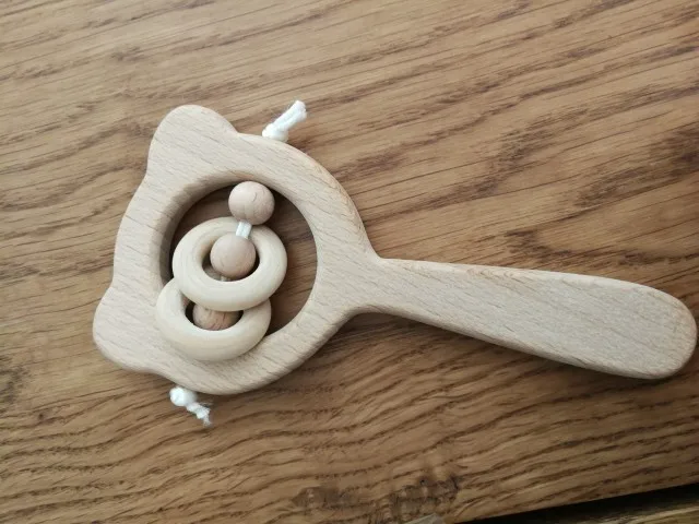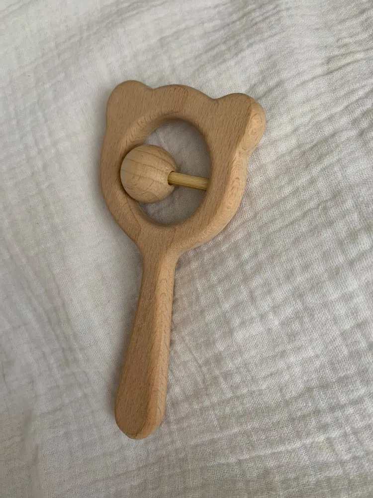 De madera de haya sonajero zarpa de oso madera para la dentición anillo bebé sonajeros puede masticar granos gimnasio Montessori juguete juguetes educativos