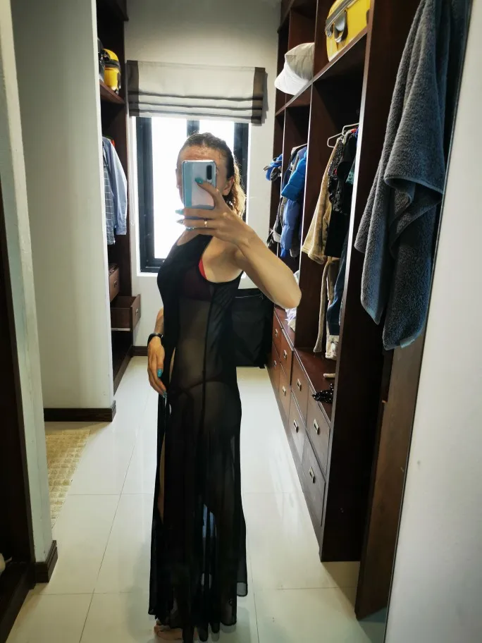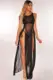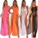 De moda de las señoras de las mujeres de Boho largo Maxi vestido noche vestido de fiesta de playa dividida vestidos de verano vestido de verano cubierta de malla.