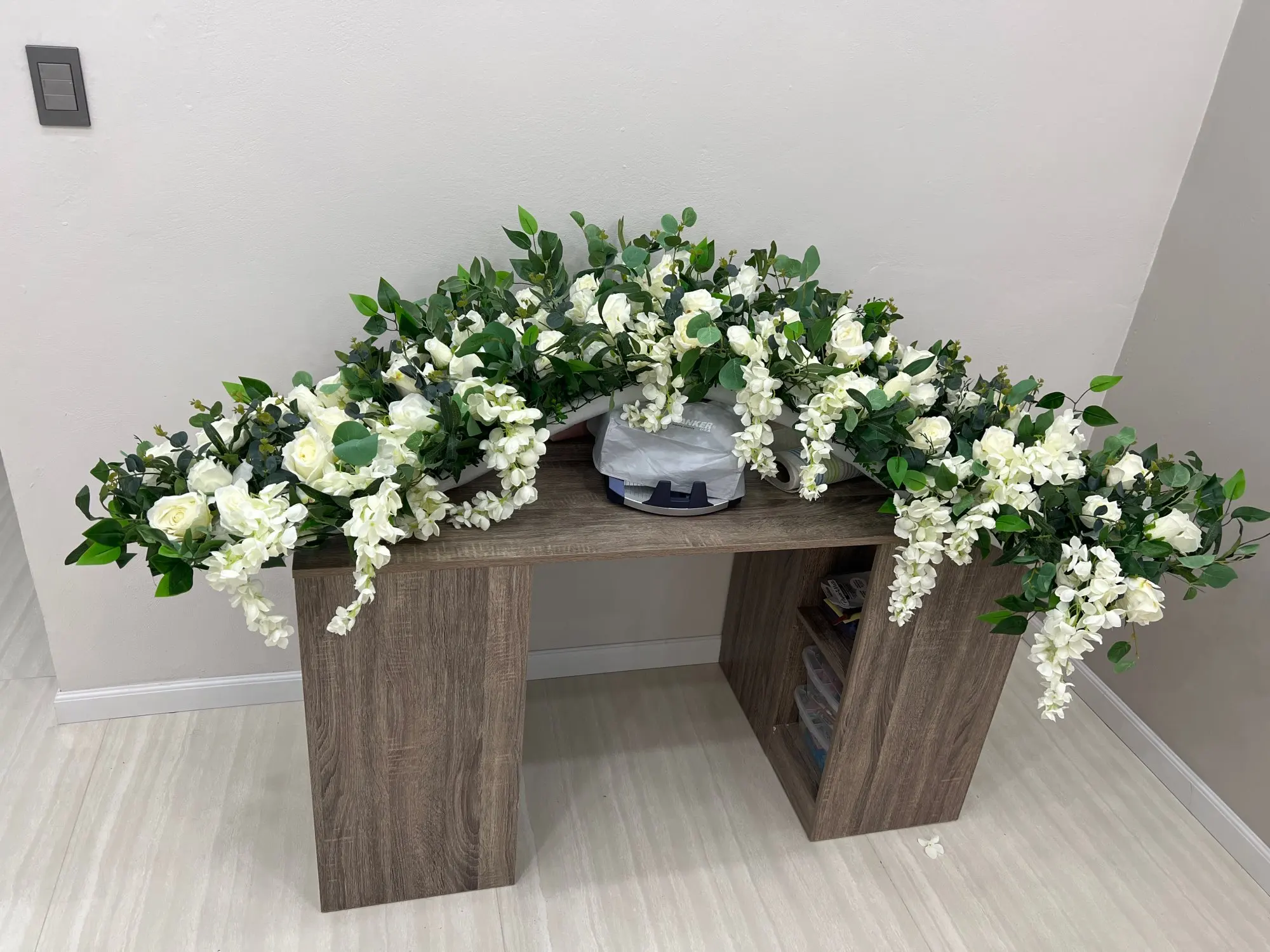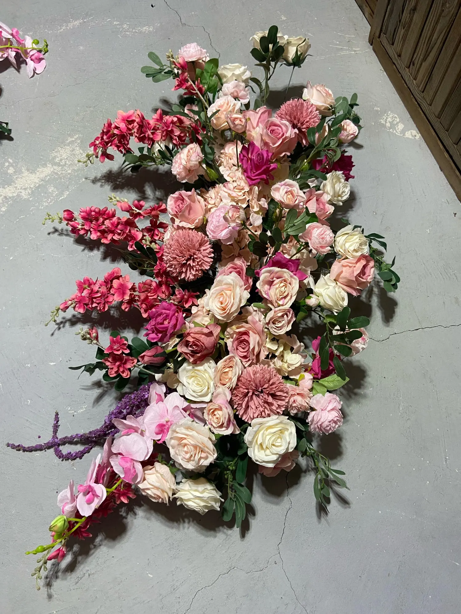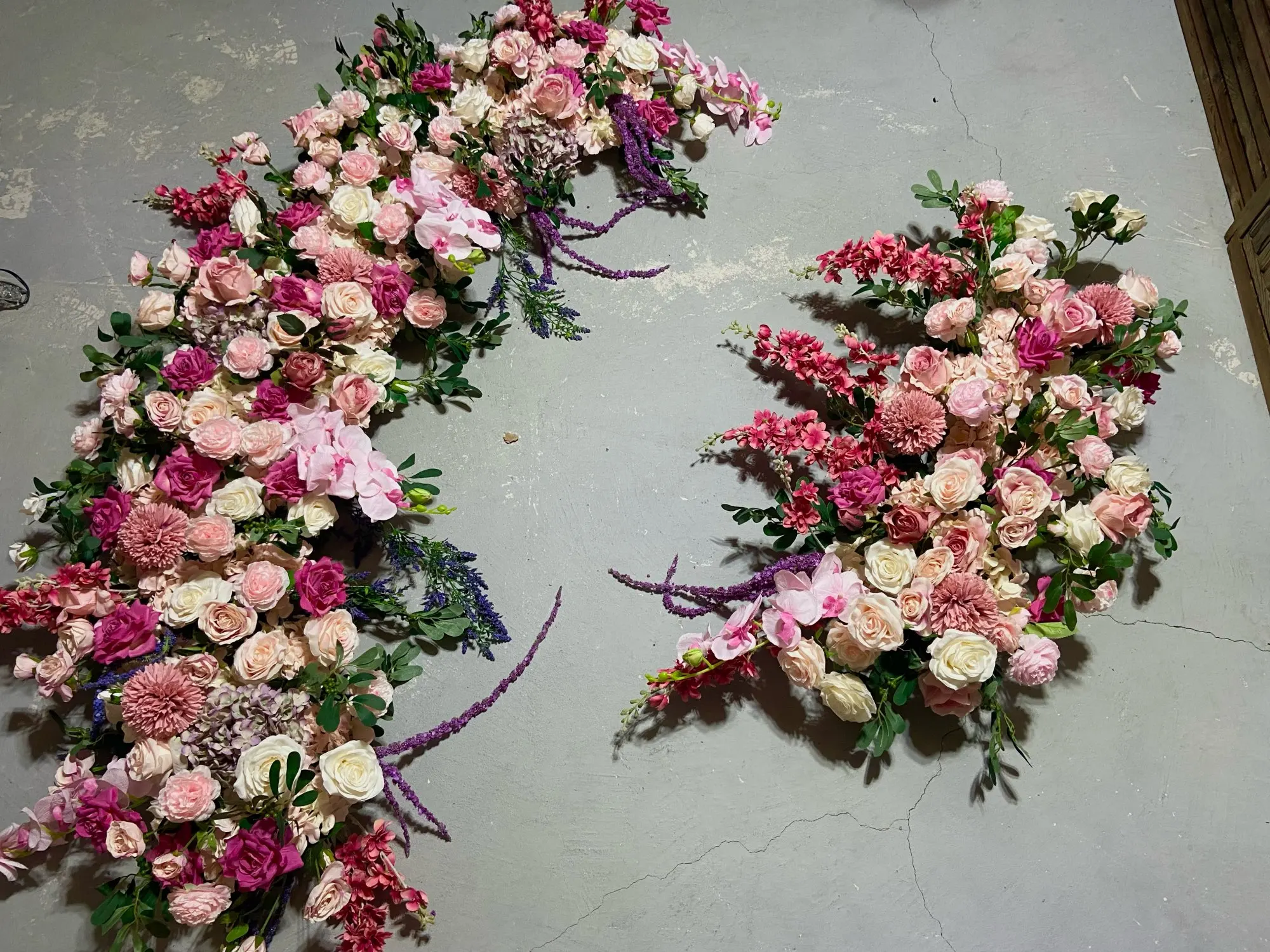 Decoración de arco de Boda Europea personalizado flor artificial de hierro forjado accesorios de boda hilera de flores falsas FONDO DE BODA Pared de flores