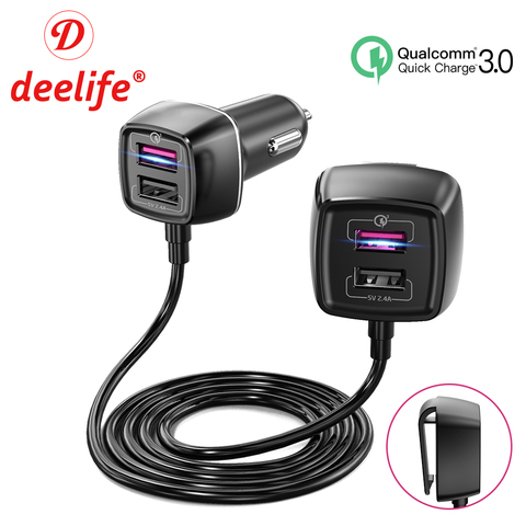 Deelife-cargador de coche con 4 puertos USB para encendedor de cigarrillos, adaptador de enchufe para asiento trasero automático, divisor de carga QC 3,0