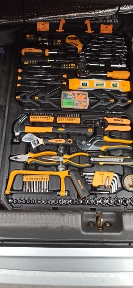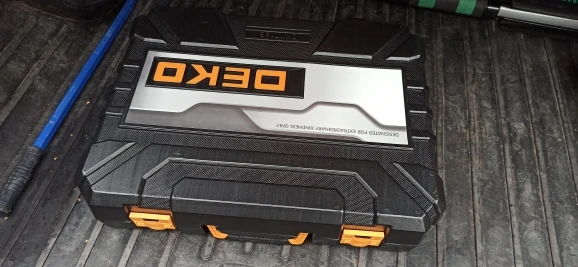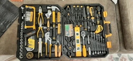 DEKO-Juego de herramientas de mano para reparación del hogar, Kit de herramientas de mano con caja de herramientas de plástico, llave de vaso, destornillador, cuchillo
