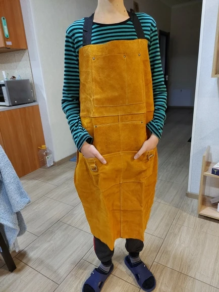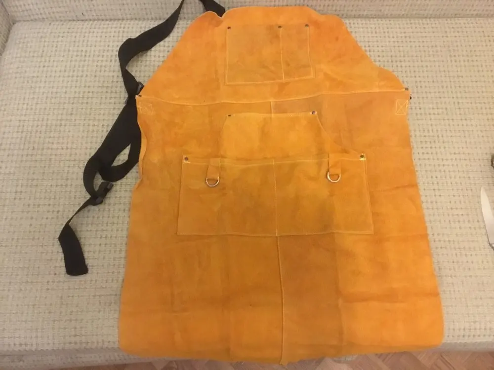 Delantal de cuero de vaca para Taller de Trabajo, 6 bolsillos de herramientas, resistente al calor y a las llamas, duradero, resistente, para hombres y mujeres