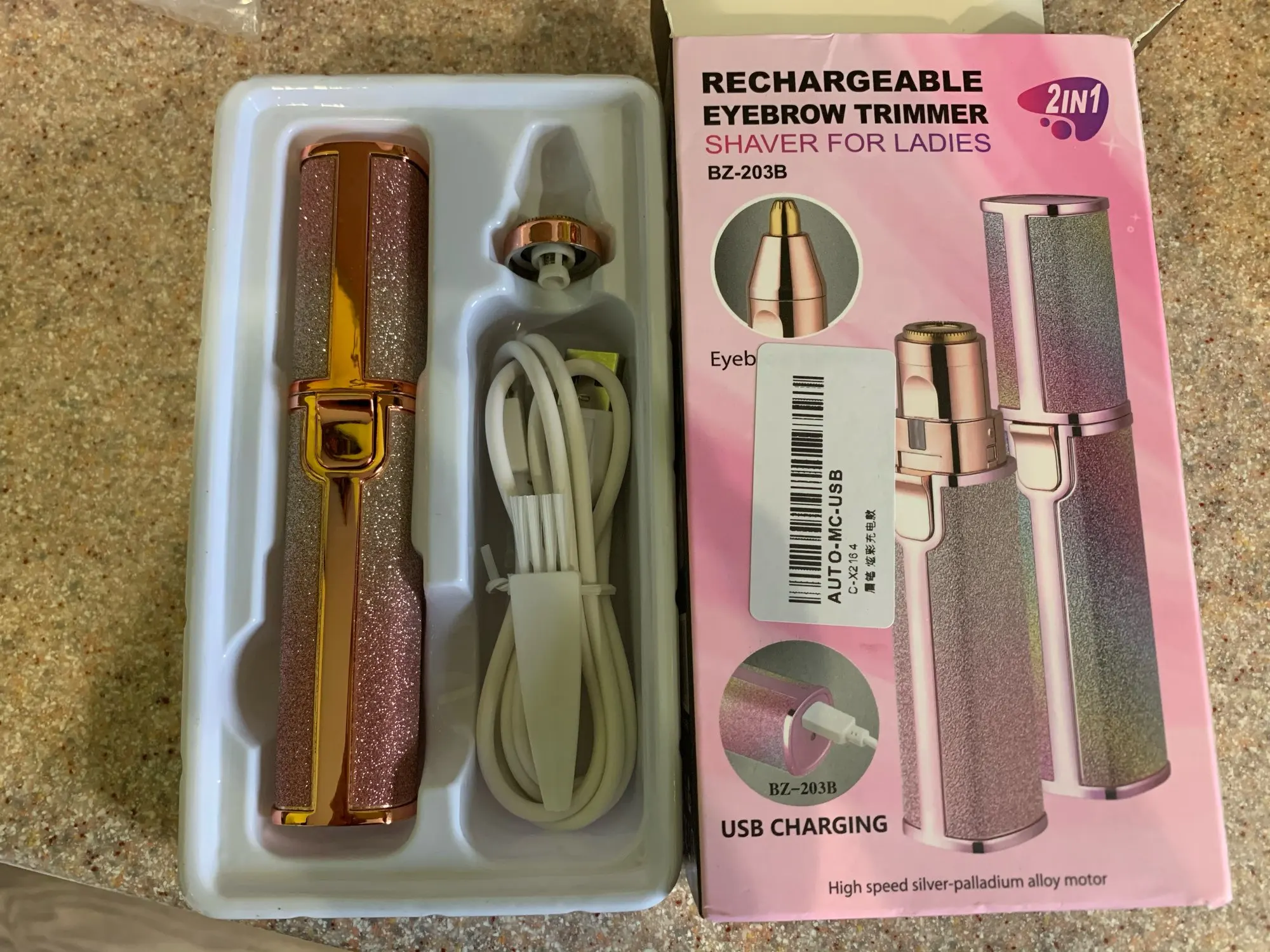 Depiladora de cejas 2 en 1, miniafeitadora eléctrica USB, portátil, indolora, para cuerpo y cara, lápiz labial
