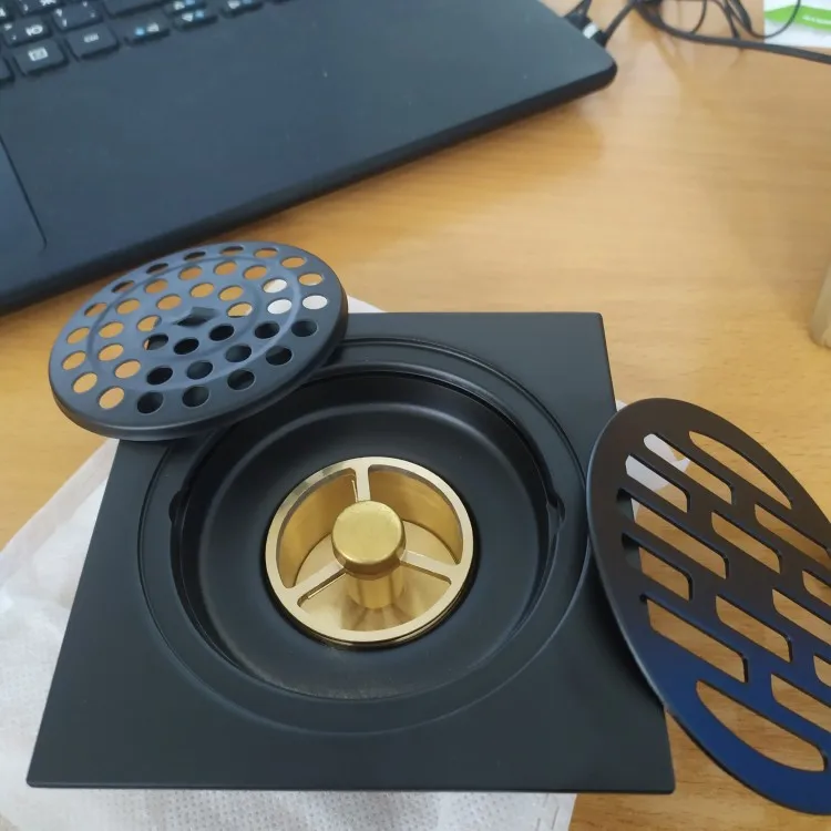 Desagüe para la ducha cuadrado de baño negro, escurridor de suelo de acero inoxidable, trampa para rejilla de desecho, cubierta redonda, filtro de pelos