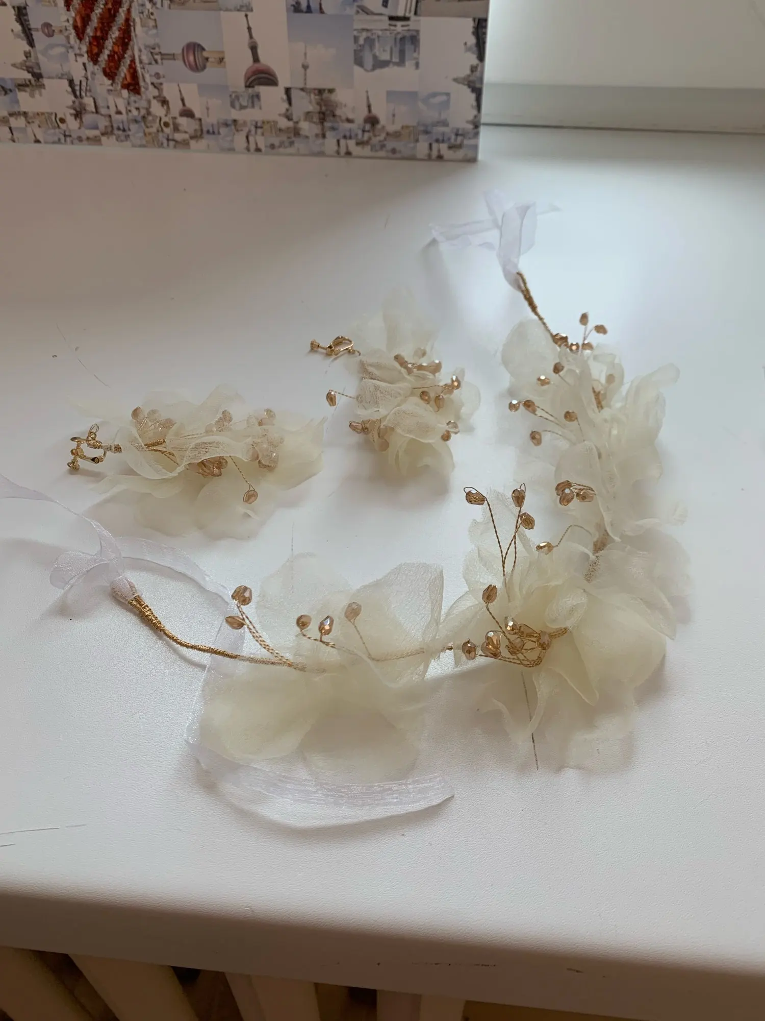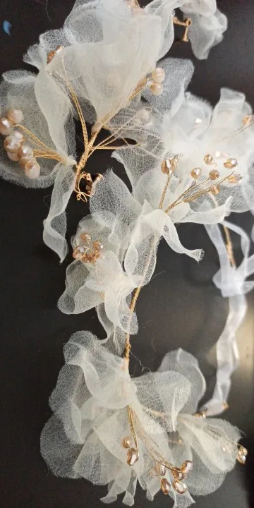 Diadema de hilo de seda con flores para mujer, pendientes de ensueño, accesorios para el cabello de boda para novia, estilo Exterior