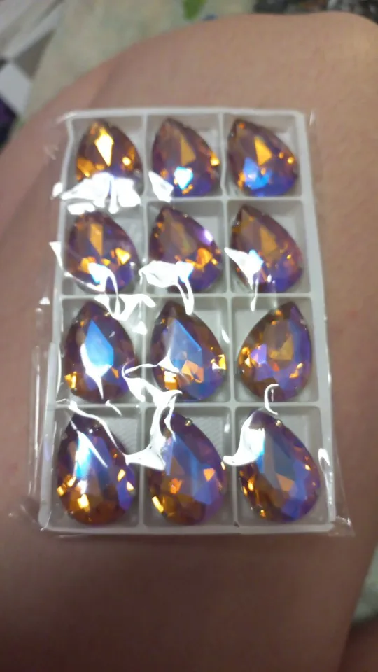 Diamantes de imitación planos piedras con forma de lágrima, ajuste de plata para joyas, soldadura de neón de color nuevo para accesorios de ropa, coser