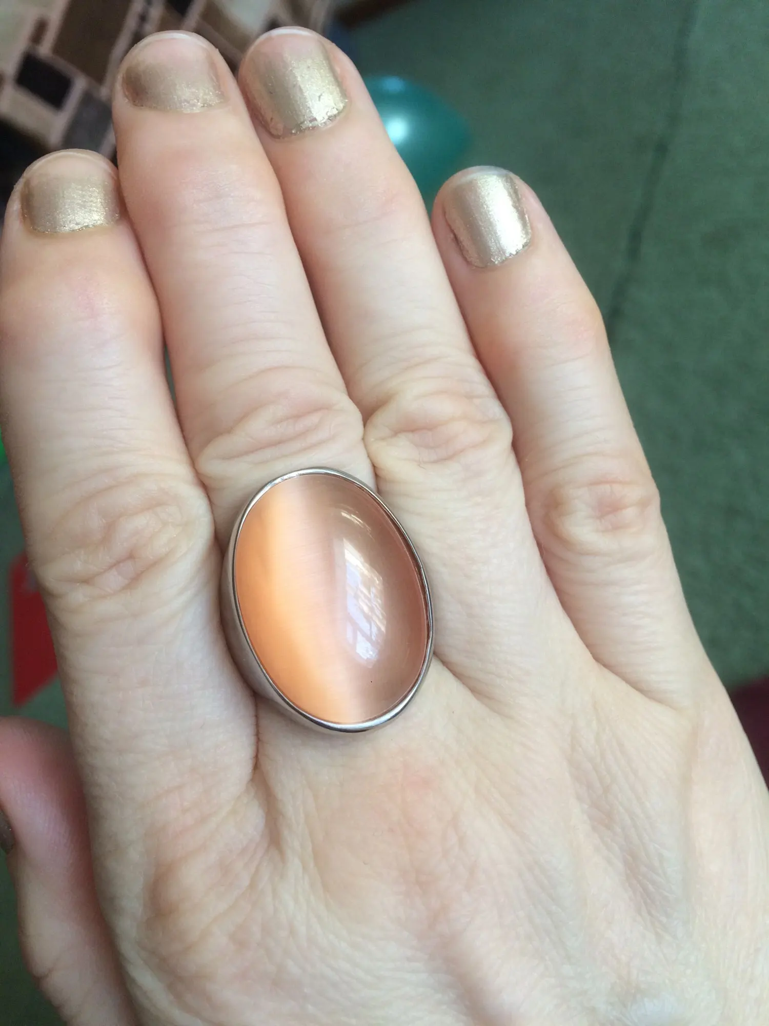 Dicotico-Anillos de boda ovalados para Mujer, piedras de mármol de colores múltiples, Color dorado, de acero inoxidable, joyería para fiesta