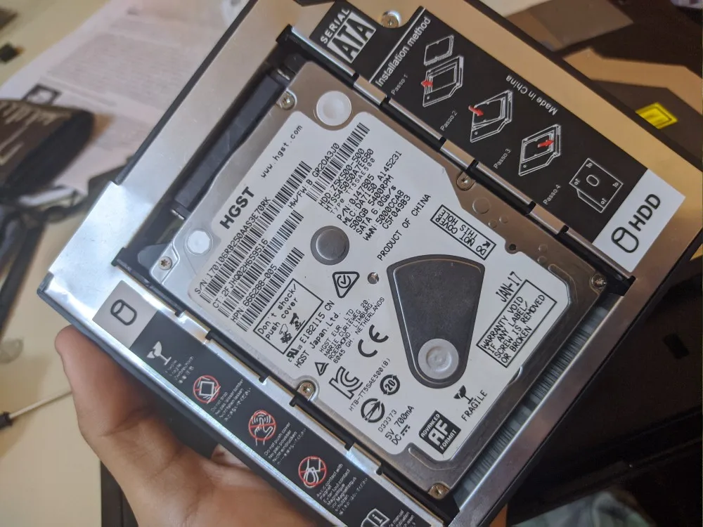 Disco Duro Universal Ssd de 2,5mm, unidad de disco duro Universal SATA de 9,5mm, Bahía de Caddy para disco duro para Cd Dvd Rom, Bahía óptica de 9,5mm, estuche de caja de HDD de 2,5"