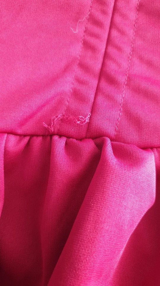 muy grande y la tela muy fea debe diferente en la página y tiene las costuras recogidas y torcidas