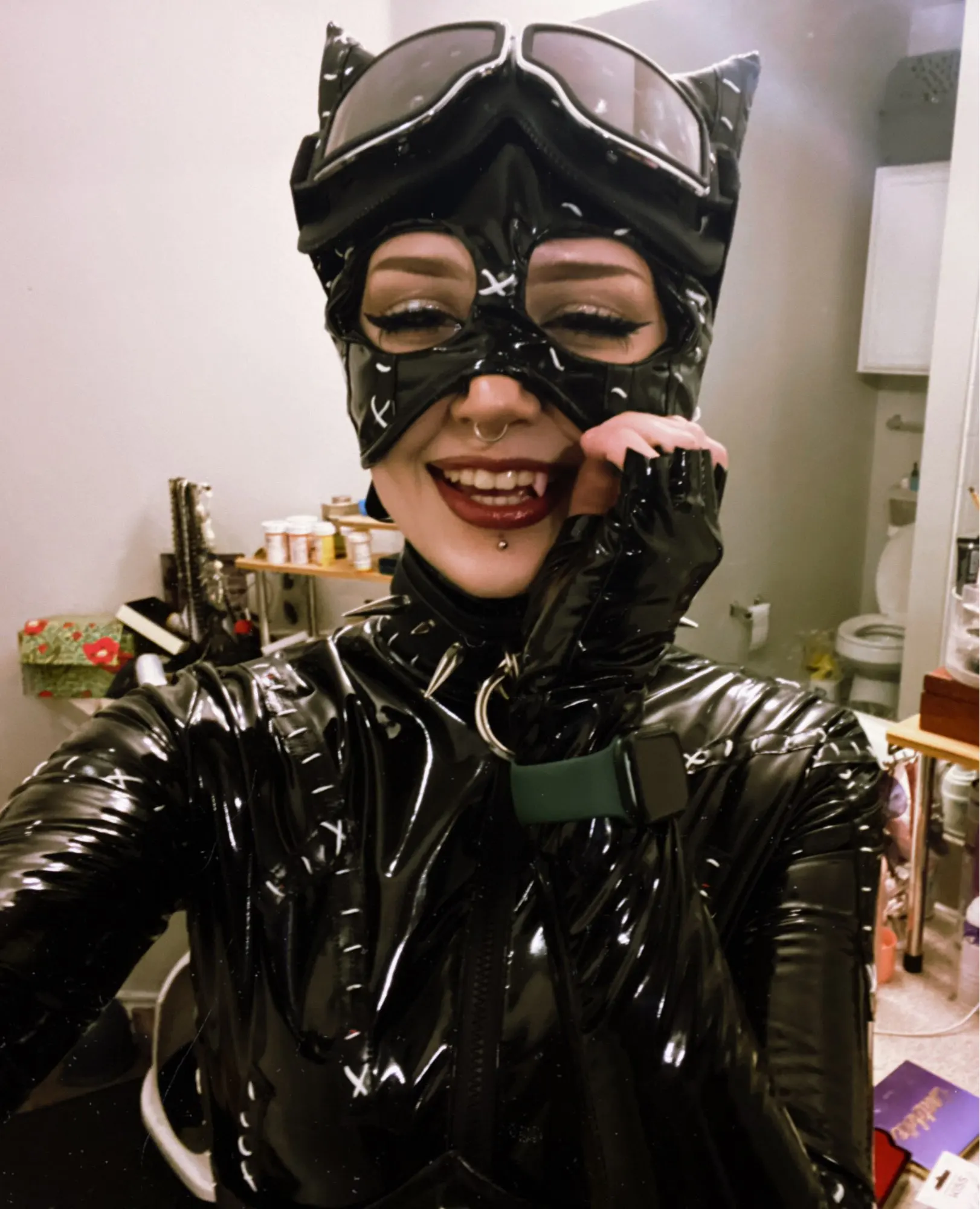 Buen estado, la máscara es un poco gruesa y arrugada, el traje está perfecto.