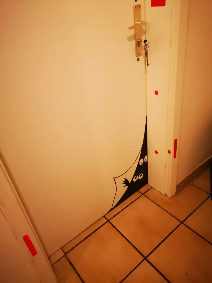 Divertido mirando los ojos de etiqueta de la pared de puerta/puerta de esquina de pared Casa Decor fondo de sala decoración arte Mural calcomanías pegatinas creativas