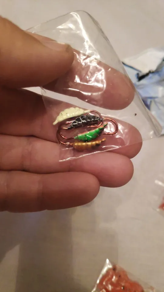 DNDYUJU 4/6 unids/lote 23mm/1,5g señuelo para pesca en hielo gusano el nuevo Metal cebo hielo plantilla 6 Color Mini plomo invierno gancho de pesca