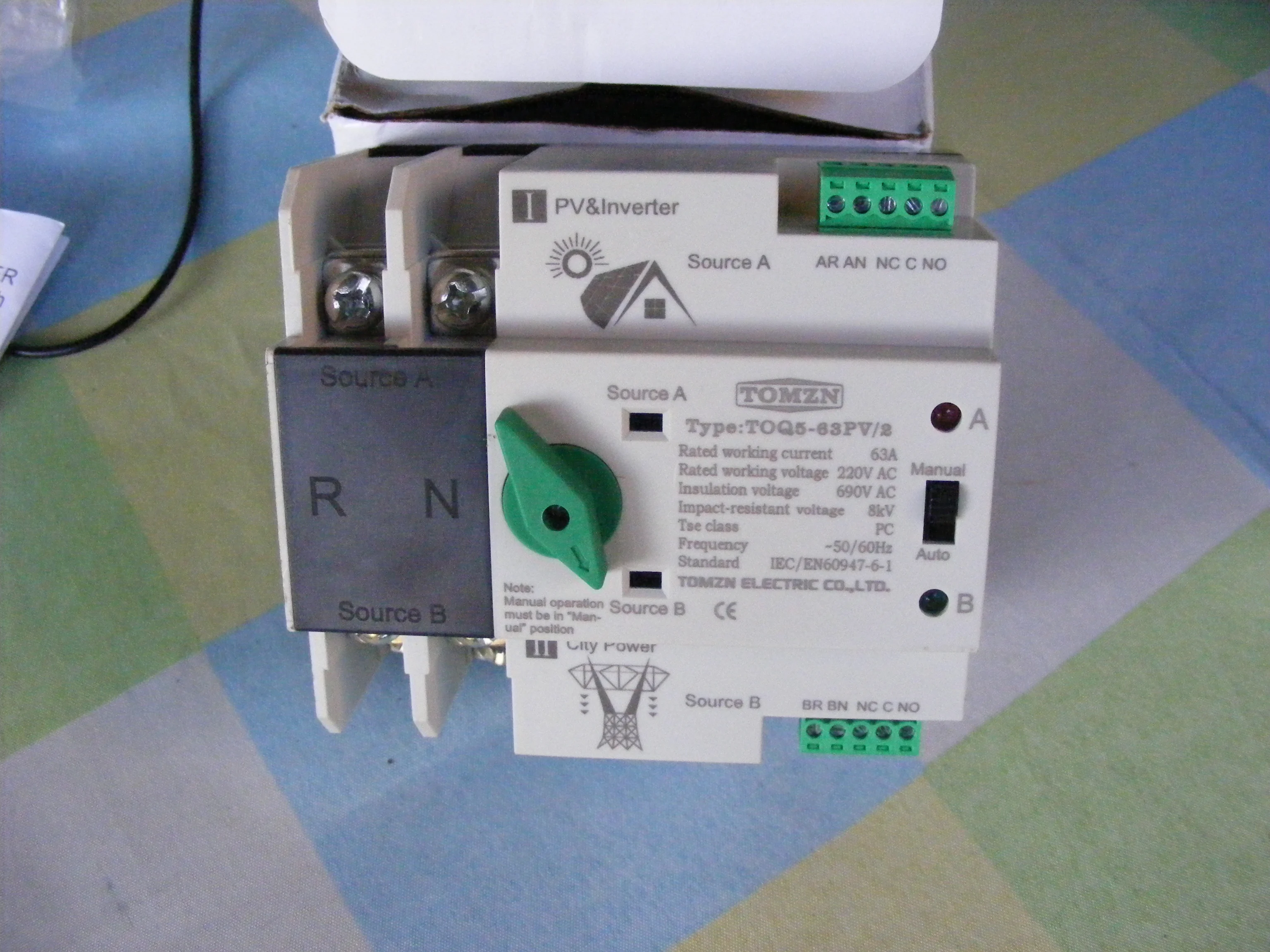Doble potencia monofásico Din Rail ATS para PV e inversor, interruptores selectores de transferencia automática sin interrupción 2P 63A 100A 125A