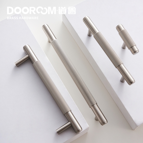 Dooroom-tiradores de latón para muebles, tiradores de níquel cepillado y plateado para armario, vestidor, cajón, sin huella dactilar