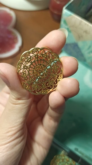 DoreenBeads conectores de aleación a base de Zinc flor chapado en oro filigrana encantos DIY componentes 31mm (1 2/8 pulgadas) x 31mm (1 2/8 pulgadas), 2 unids