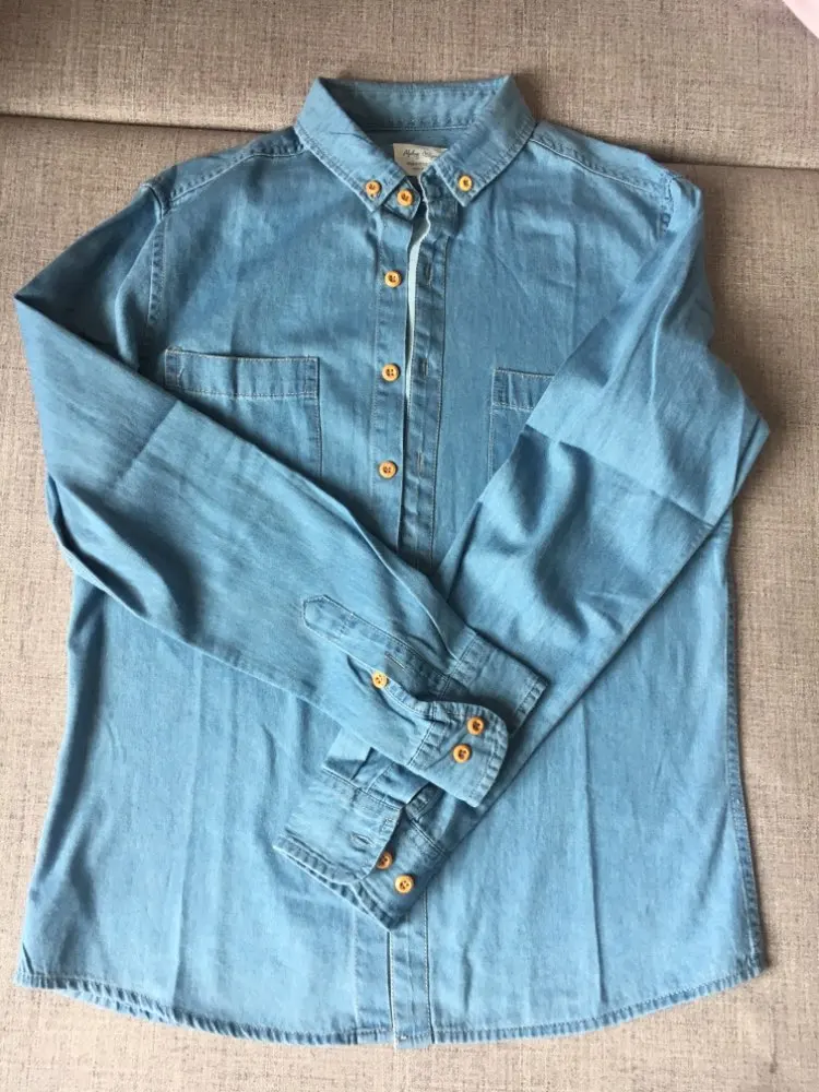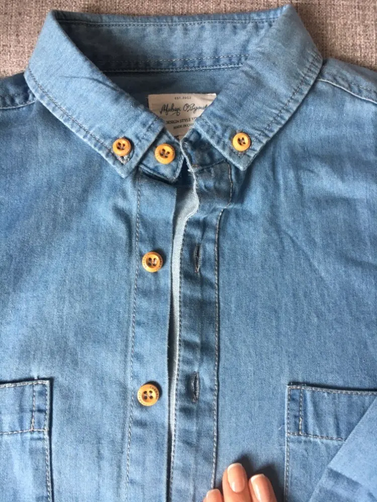 Dos bolsillos delante, primavera otoño Camisa vaquera Hombre manga larga suave 100% algodón vaqueros Slim vaquero camisa Slim 4XL
