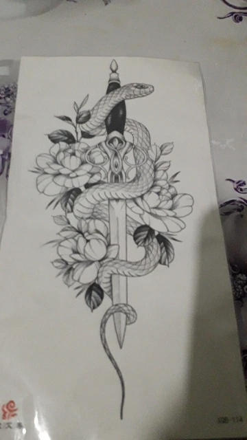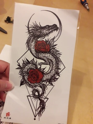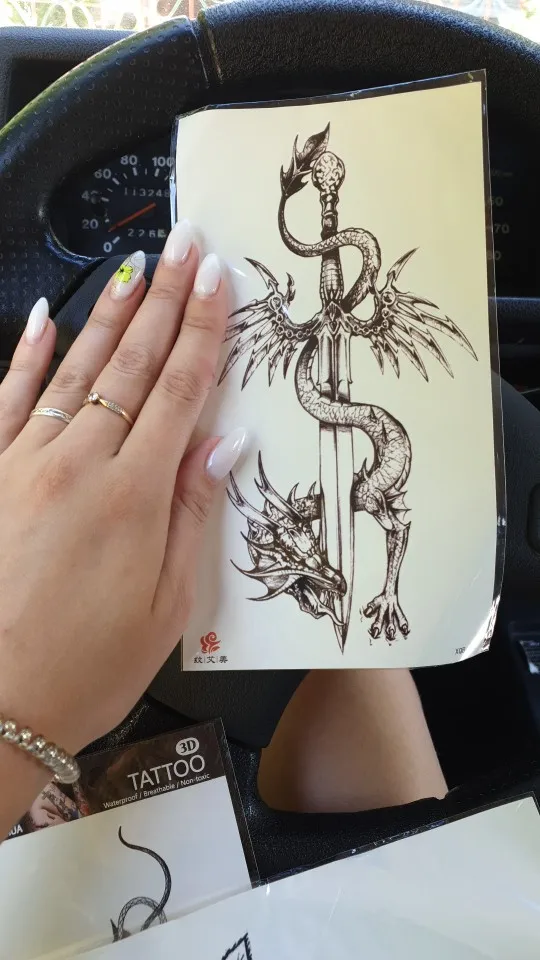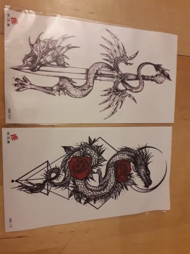 Dragón negro rey tatuaje temporal para los hombres las mujeres serpiente del árbol tatuajes de flor impermeable hecho espada falso prediseñado tatuajes brazaletes