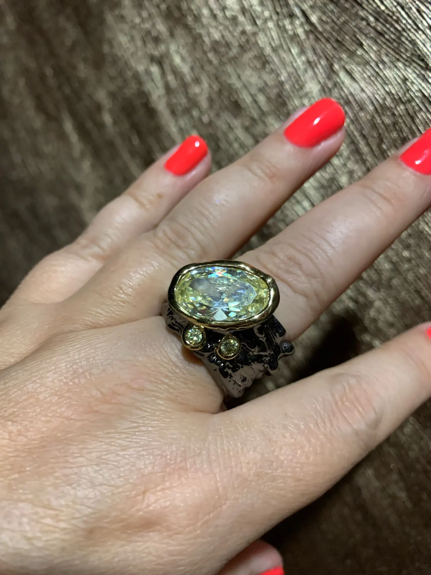 DreamCarnival1989-Anillo de boda de circonita dorada muy grande y deslumbrante para mujer, banda de corte Irregular, joyería gótica Chic para citas, WA11756