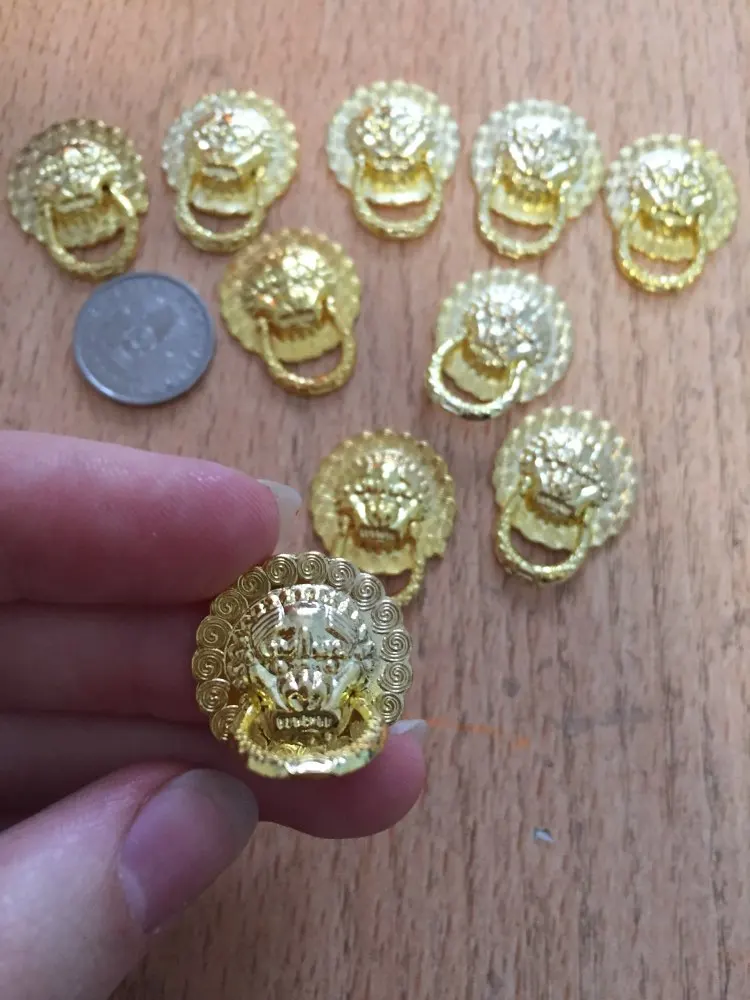 DRELD-tirador de puerta con cabeza de león Vintage, tirador de mueble, tirador de cajón de aparador, Hardware de muebles de 19x24mm, cobre rojo/oro, 10 Uds.