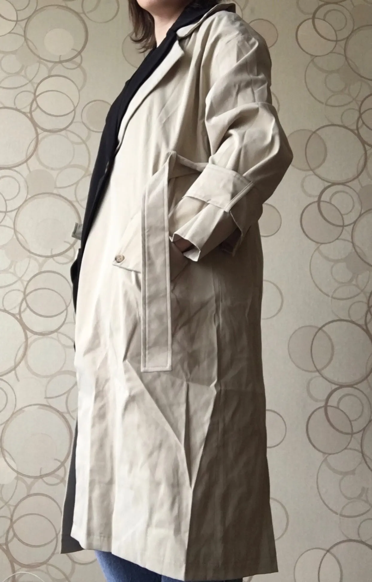 EAM-gabardina asimétrica de talla grande para mujer, gabardina con solapa nueva de manga larga, holgada, cortavientos, a la moda, primavera y otoño, 2022, 1K912