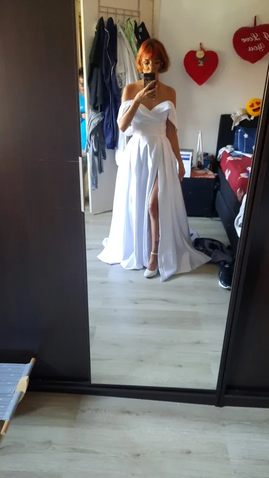 Eeqasn-vestido De graduación De corte en A, Vestido De satén De Primavera De 2022 con hombros descubiertos y cuello en V, vestido De noche largo Formal elegante, Vestidos De Gala