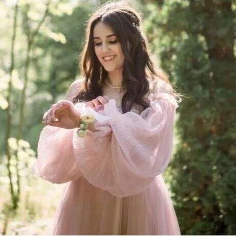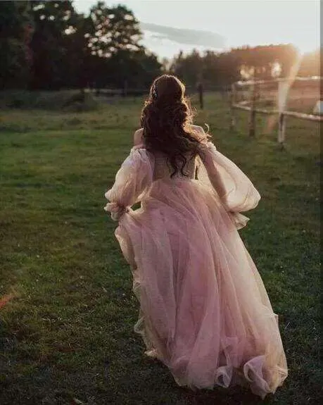 Eghtree-vestidos de boda de color rosa con mangas abombadas, vestido nupcial de princesa, sin hombros, elegante, de talla grande