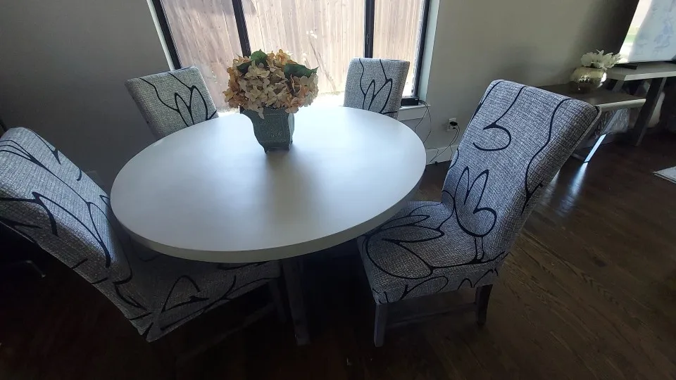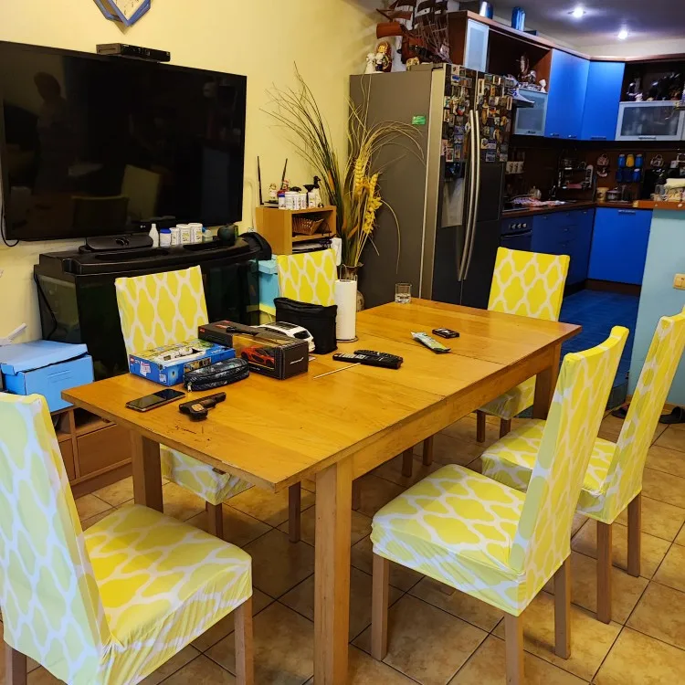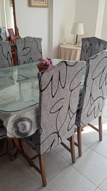 la tela un pelín más fina de lo que me esperaba y un poquito grande pero en todo su conjunto me gusta mucho la cenefa y como queda puesta