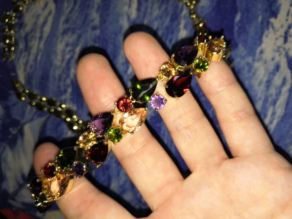 Este collar no tiene la misma qualidad de color, el dorado es mas claro y los cristales menos luminosos que venden otras tiendas