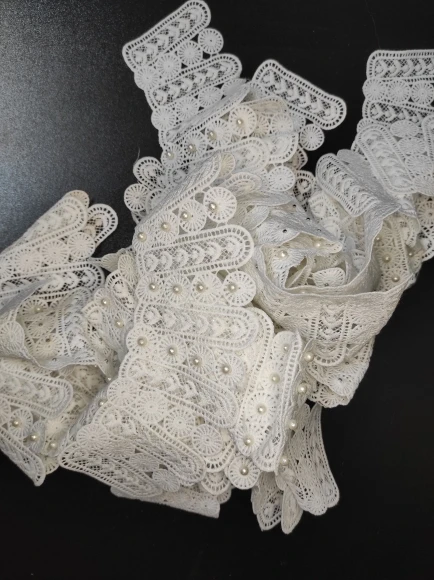 Encaje de cuello bordado con perla blanca, apliques venecianos, bordado, costura de parches, accesorios de tela de costura YL94