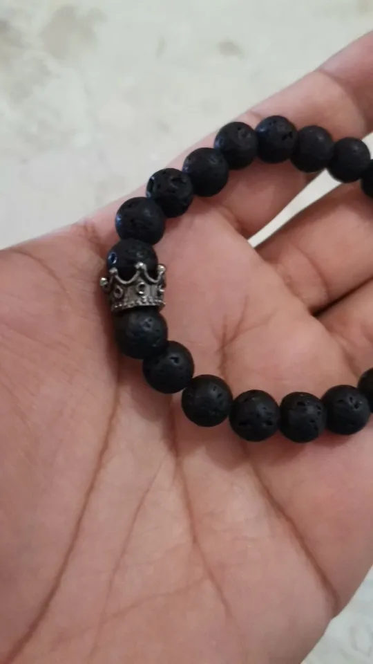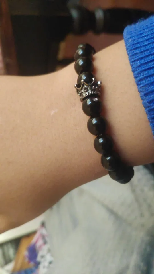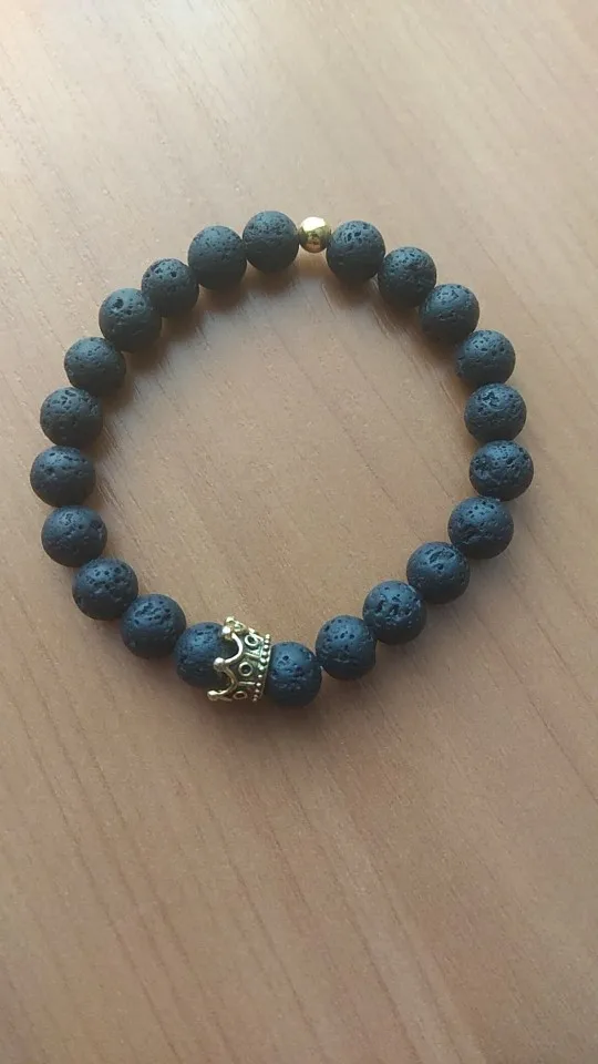 Encanto de joyas de piedra Natural pulseras de cuentas par dorado Negro corona pulsera hombres con cuentas de cobre brazalete pulsera de mujer dorada