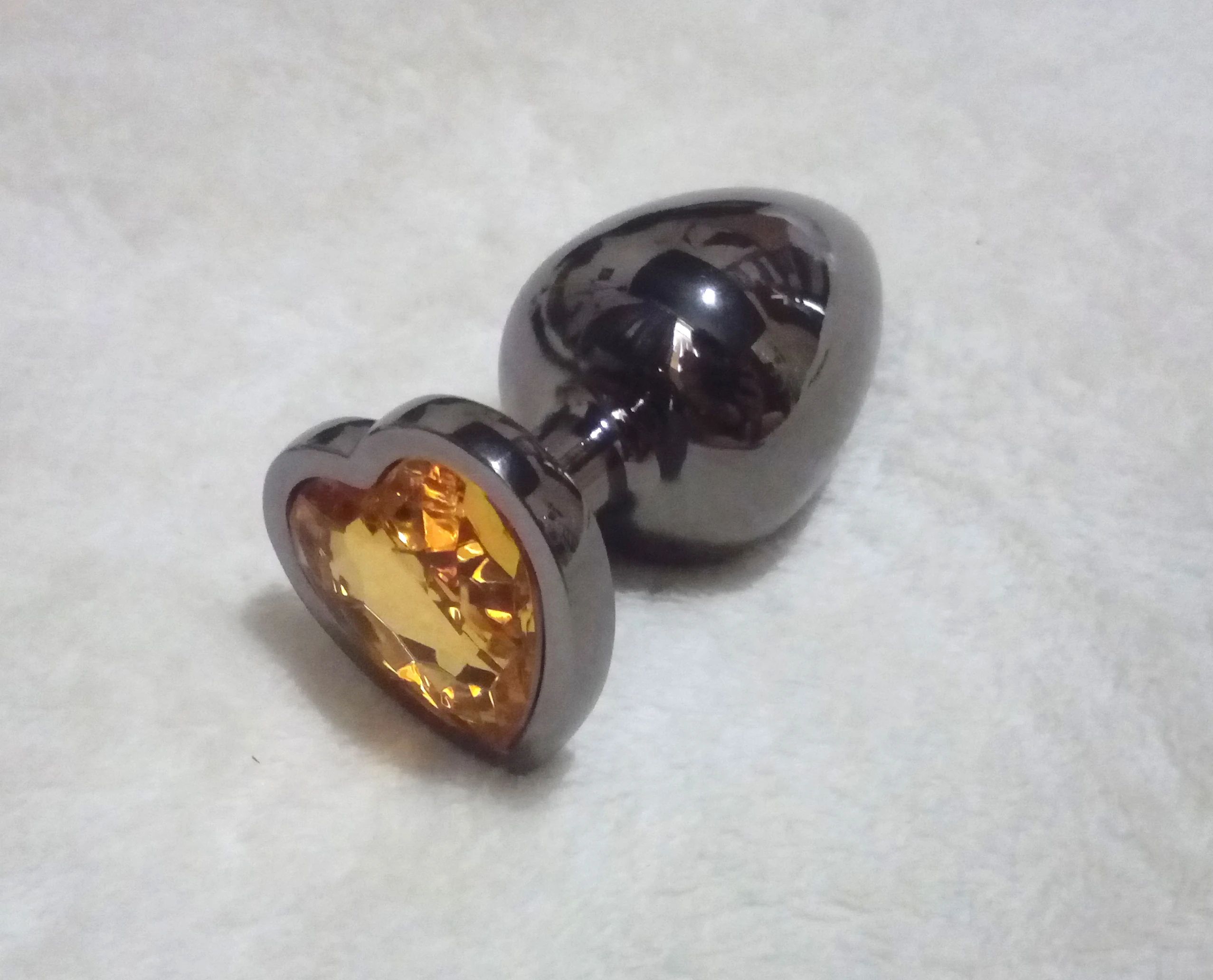 Enchufe Anal negro, acero inoxidable, piedra lisa en forma de corazón, dilatador Anal