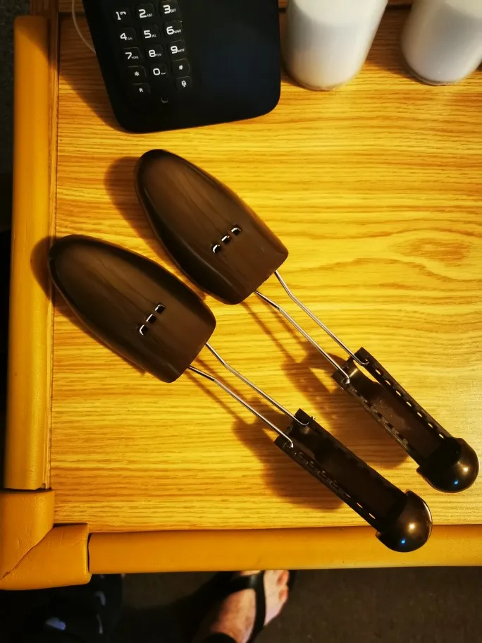 Ensanchador de zapatos de plástico ajustable, botas para evitar arrugas, deFormato, expansor de zapatos, Color marrón, 1 par