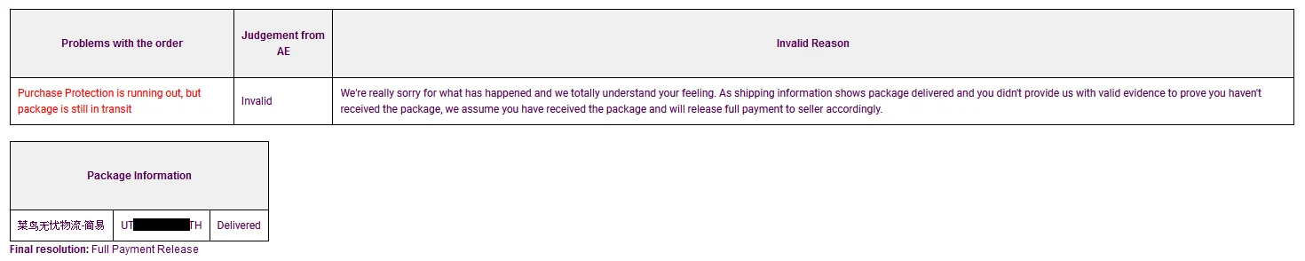 Valoración de Aliexpress: