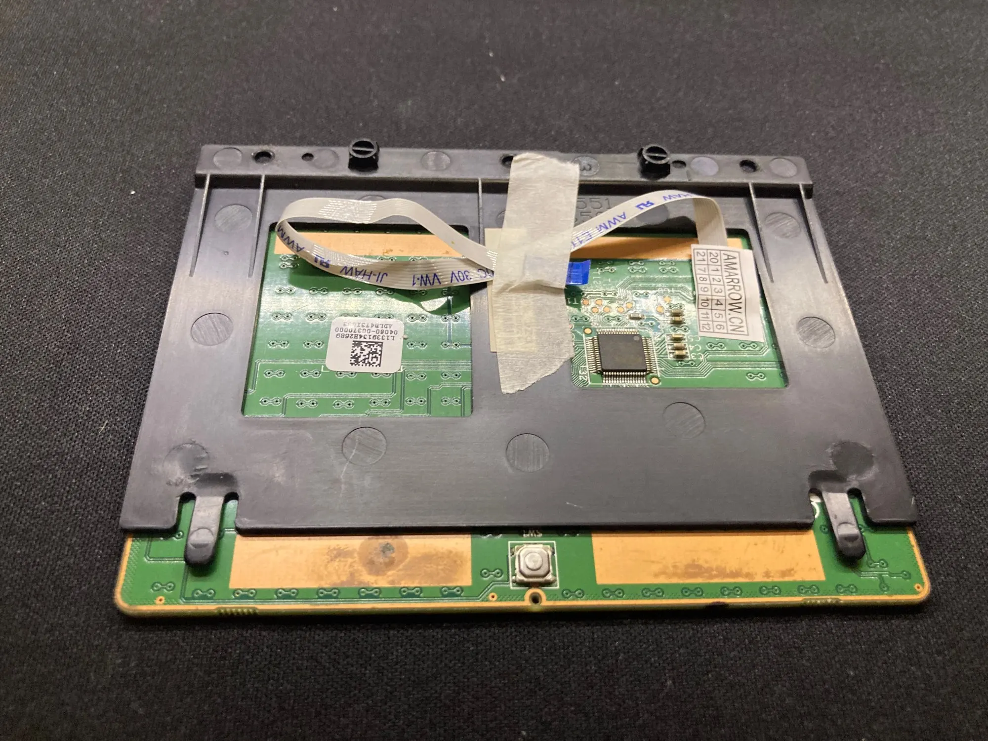 El artículo llegó a casa bastante pronto. El problema es que el material del soporte de plástico es bastante mediocre y cuando llegó a casa una de las patitas superiores que hacen de tope para realizar los clicks estaba partida. Quitando eso lo he instalado y parece que funciona algo mejor que el trackpad reemplazado, aunque al hacer click izquierdo se nota algo raro, distinto al derecho.