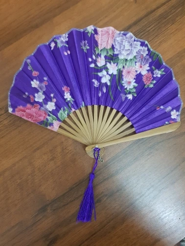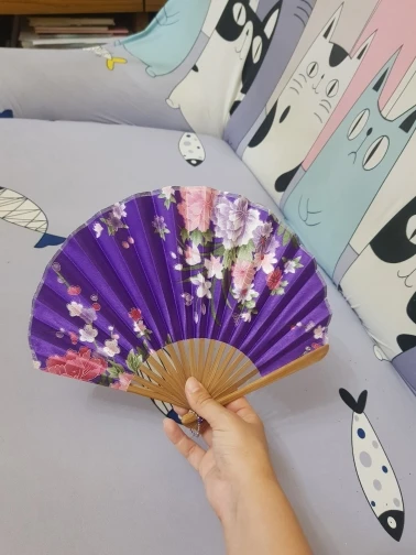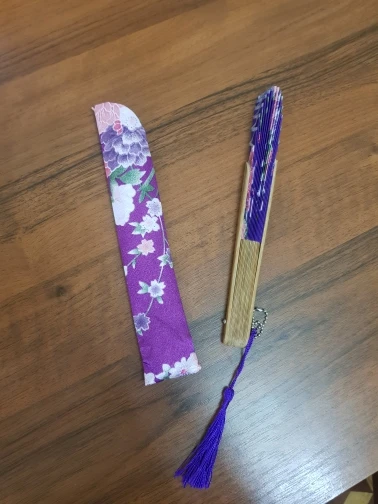 Es muy bonito y funciona perfectamente. Está hecho de una tela muy finita y un poco brillante. Lo demás es de madera. La funda es de la misma tela, con varias capas, así que es más gruesa y proteje bien al abanico. Ha llegado muy rápido a España, antes de la fecha estimada. Estoy muy contenta con el pedido.