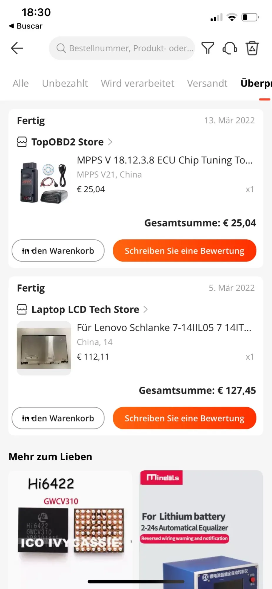 Valoración de Aliexpress: