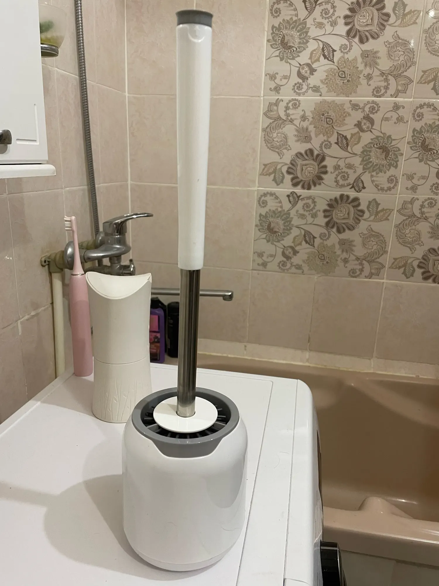 Escobilla, pinzas y soporte con mecanismo para colgarlo de la pared, cepillo de goma, TPR, limpieza del inodoro, cuidado del baño