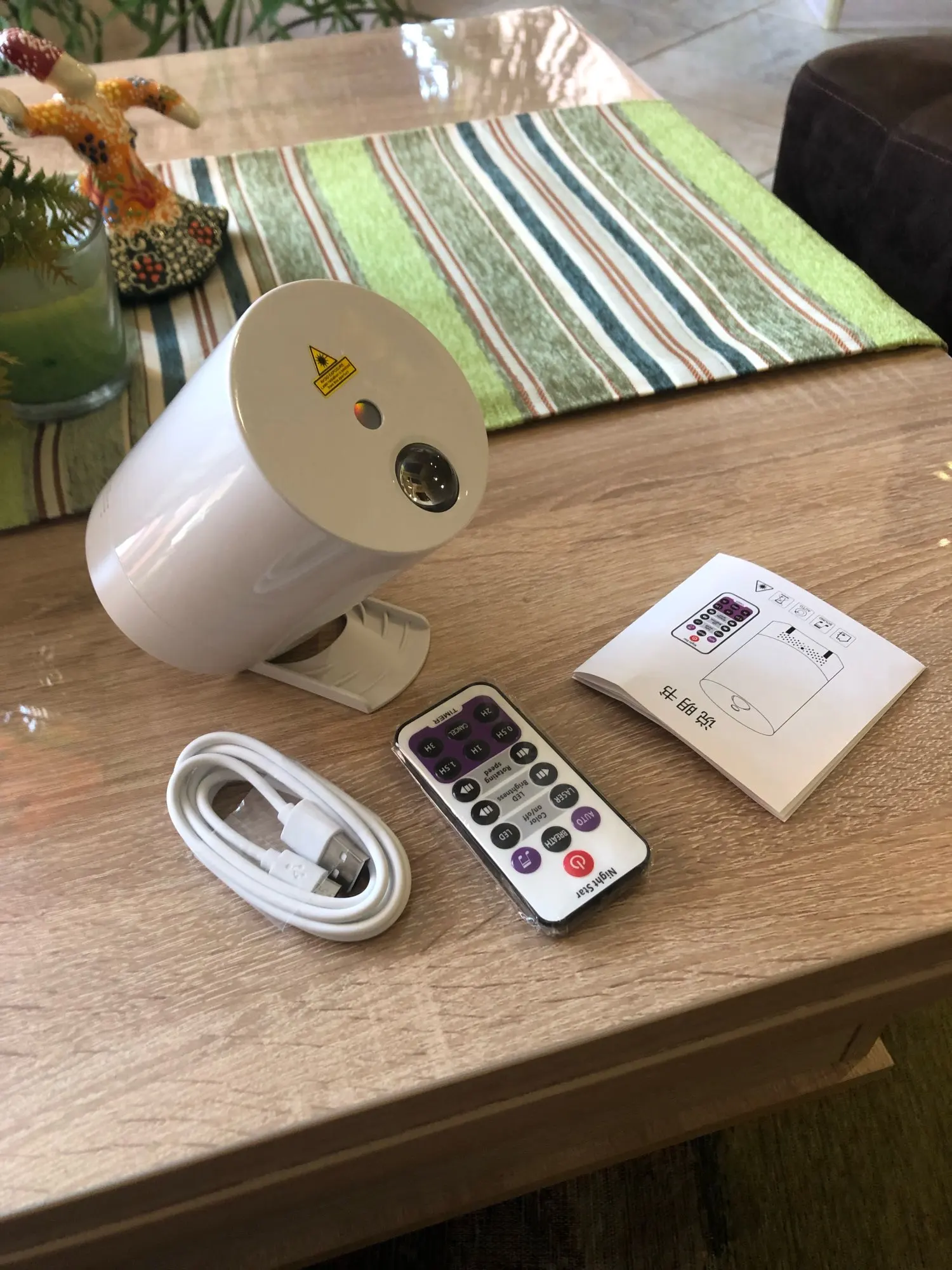 esta muy bien el producto, ilumina muy bien donde lo pongas,colores llamativos y vivos, relaja cuando te quedas mirandolo,viene con un pequeño mando que lo puedes configurar a tu gusto,colores tiempo para que se apague solo.recomiendo tanto el vendedor como el producto.