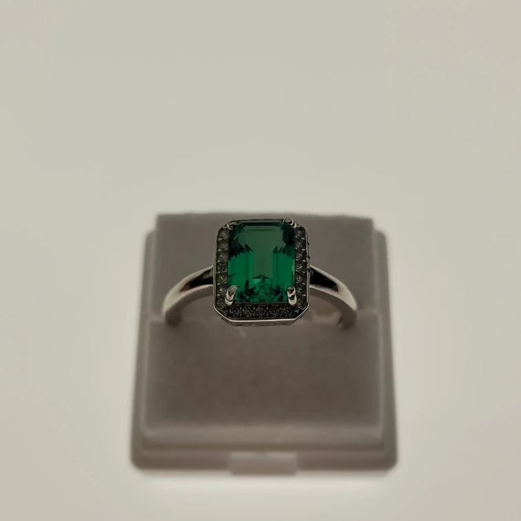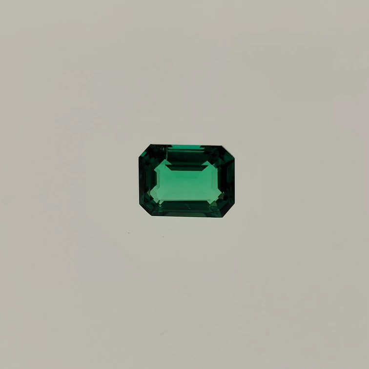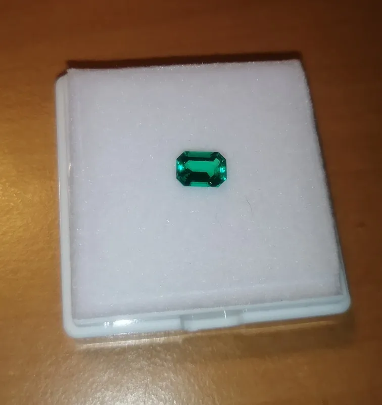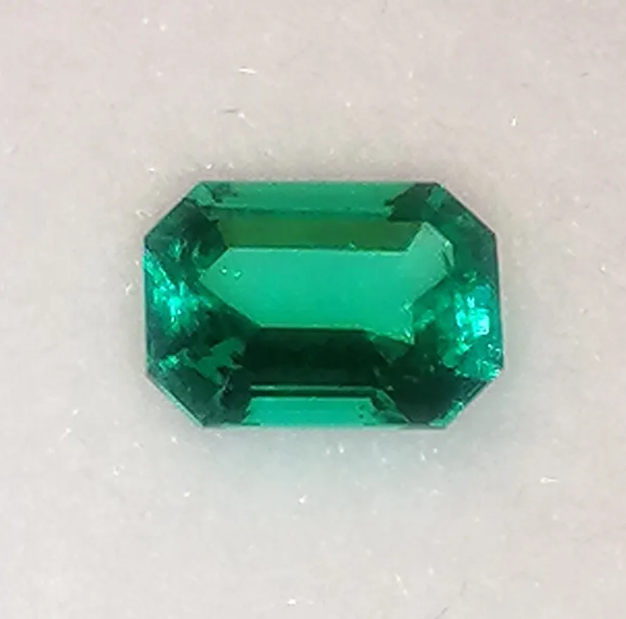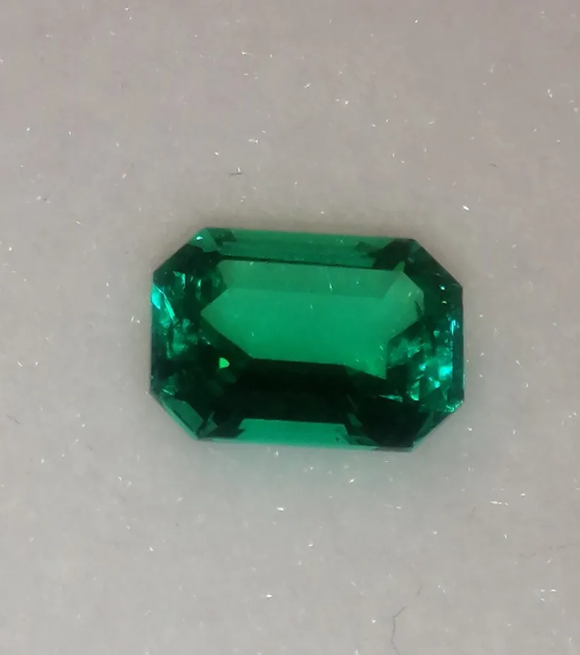 Esmeralda de Colombia hidrotérmica, Gema suelta con formas rectangulares, incluyendo grietas leves e incrustaciones