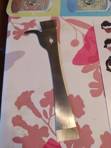 llegó con un día de retraso y tiene una rañura en el mango de madera.