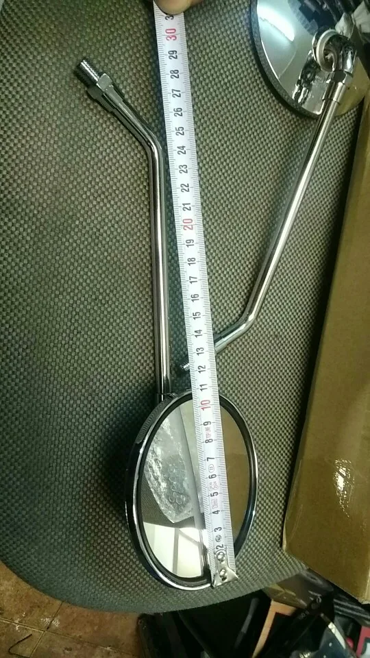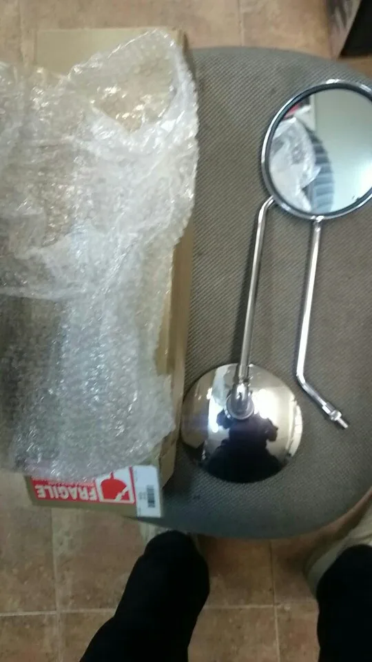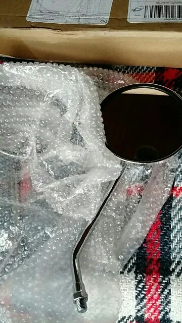 Retrovisores de calidad por el precio, ok. Un poco mas pequeños de lo esperado, pero no había medidas de longitud, así que no puedo quejarme. No trae tuercas de fijación, al ser un paso distinto al métrico normal ,problema que se puede resolver, por el precio. Bien.Embalaje correcto.Tiempo poco menos de un mes. Recomiendo.