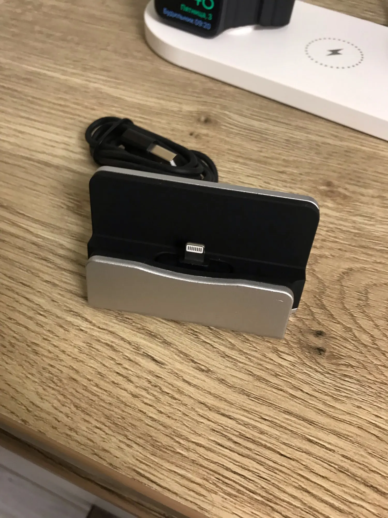 La base del producto no está pareja. Pareciera que hubiesen aglutinado los elementos y al cerrar la base está quedo dispareja. Eso hace que la base de carga se mueva completamente. Sí rescatar que el conector de carga del iPhone engancha muy bien y no se sale facilmente.