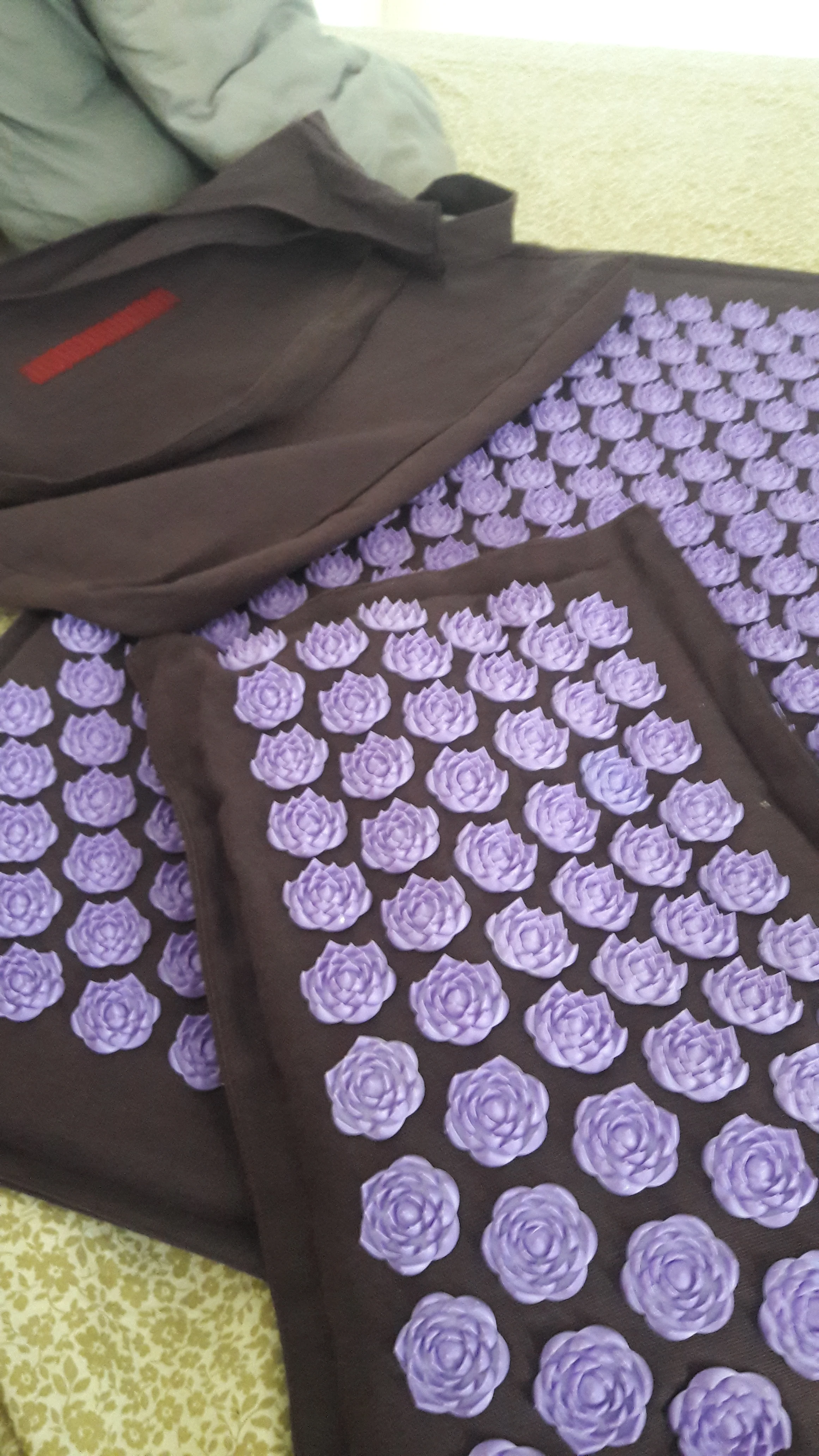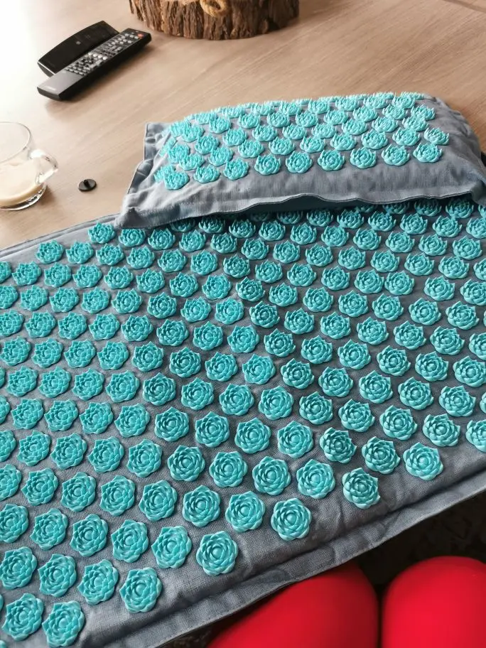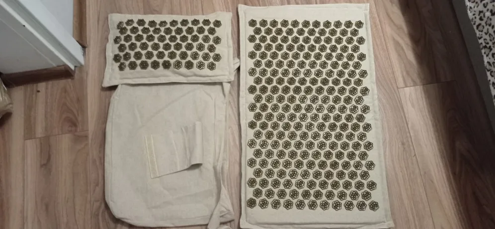 Esterilla de Yoga de lino natural y palma de coco con bolsa, cojín de acupresión con punta de loto, 74x44cm