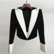 EXCLLENT-Chaqueta corta de terciopelo para mujer, de diseño elegante, con botones de León, bloque de Color, Patchwork, 2022