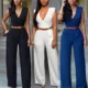 Fajas de cintura alta con cuello en V pantalones sueltos de pierna ancha de verano mono Casual monos para mujer monos de mujer