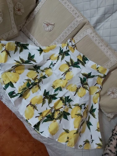 Falda de algodón con dibujo de fruta para mujer, falda de limones en blanco y amarillo, longitud hasta la rodilla, Estilo Vintage, 50s