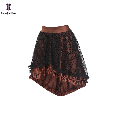 Falda de talla grande con cremallera trasera para mujer, corsé Steampunk gótico, asimétrico, Victoriano, marrón/negro, 937 #