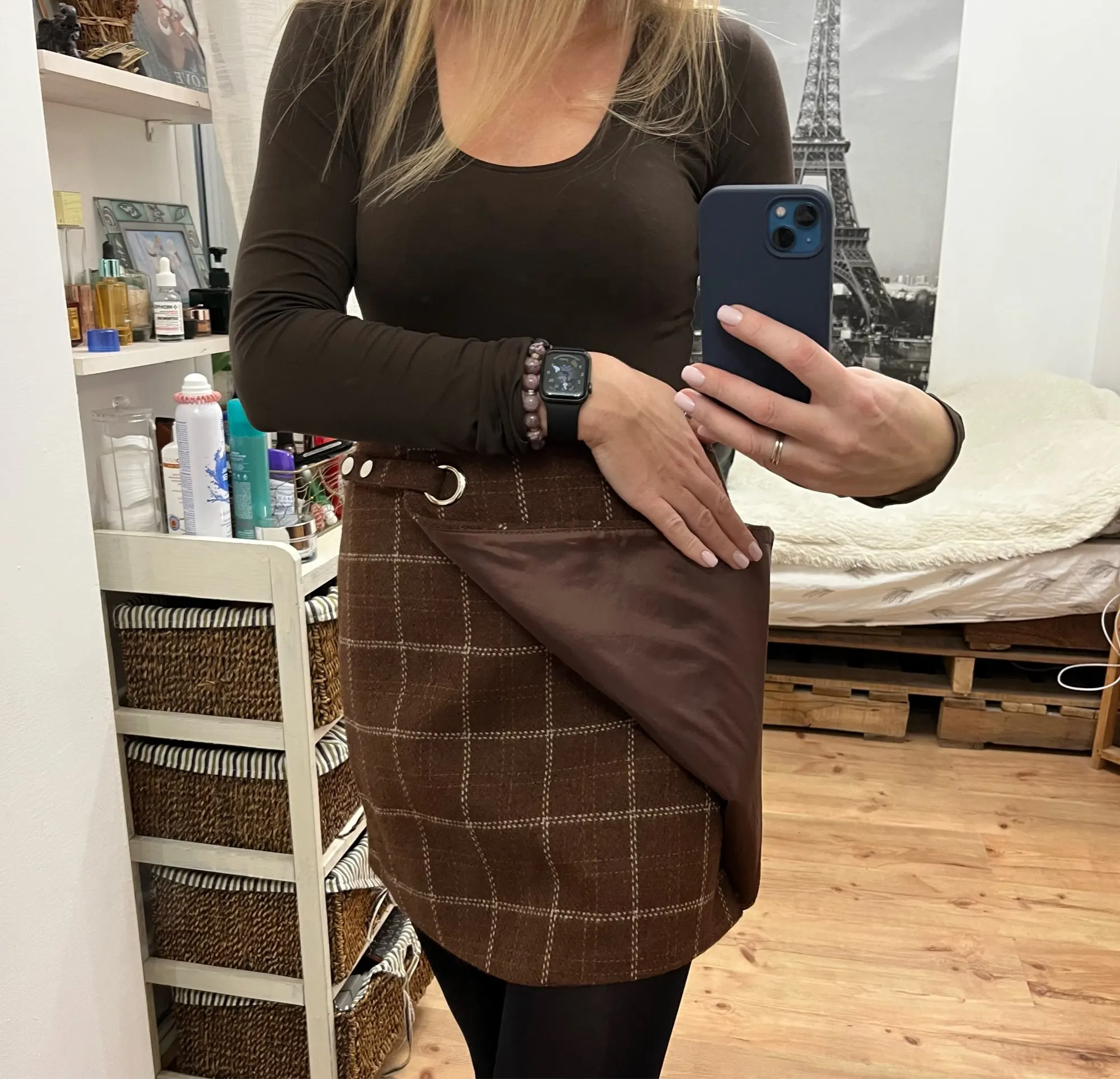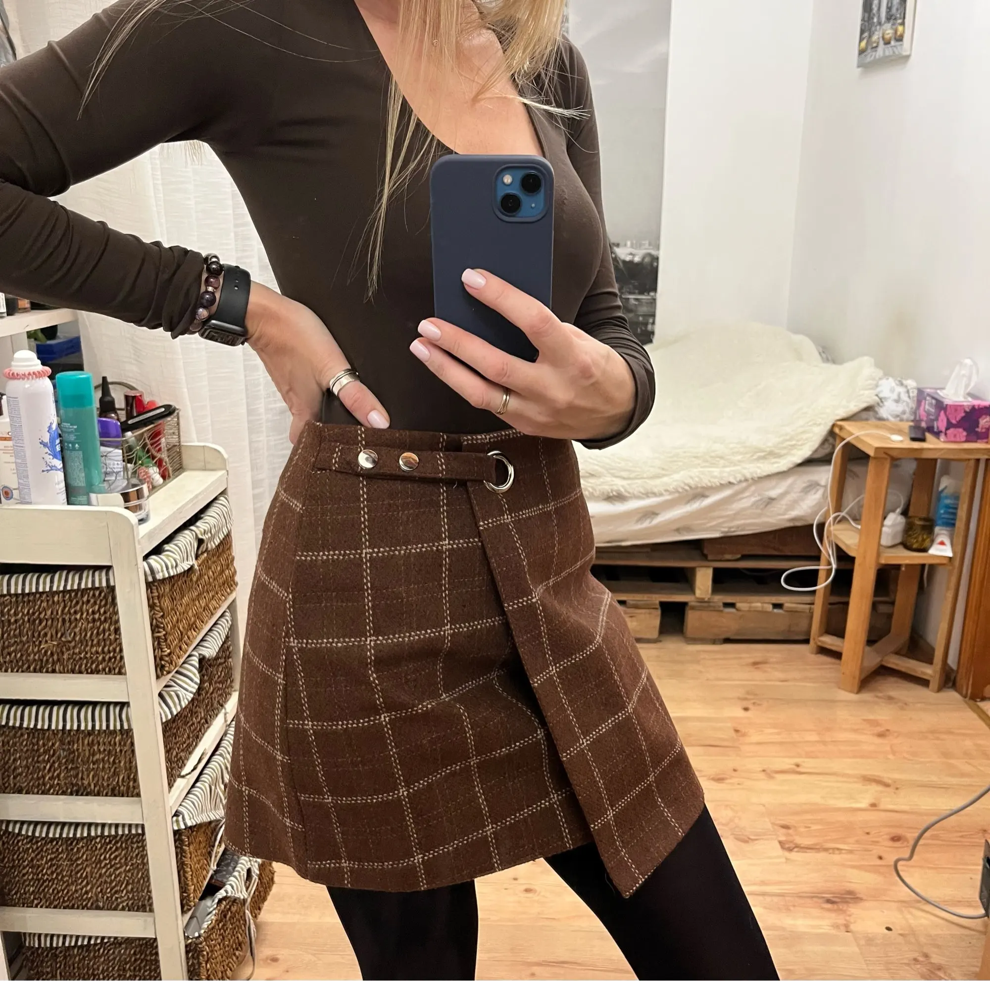 la falda es bonita en todos los sentidos pero la talla es muy muy justa. No he podido ni estrenarla. Tengo una 38 española. La L me va muy muy justa, no se puede llevar. Una pena porque es muy bonita